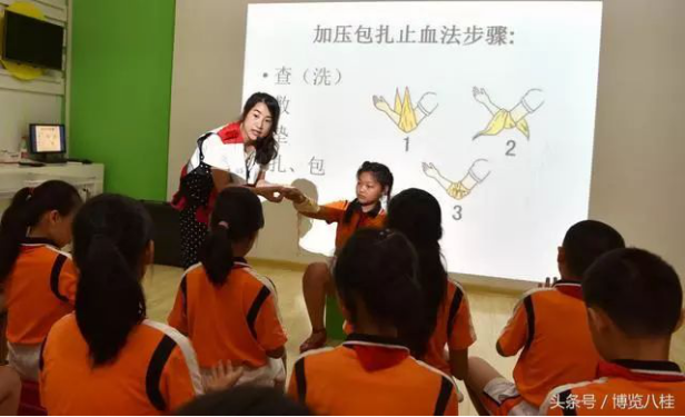 ▲ 5月28日,广西365bet官方游戏_线上365bet_bet28365365娱乐场红十字会志愿者在柳太路小学向学生们传授应急救护知识。