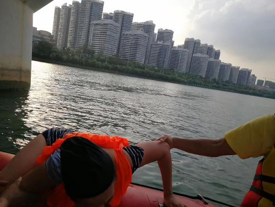2018年8月5日下午16:30,365bet官方游戏_线上365bet_bet28365365娱乐场红十字水上救援队志愿者驾驶着冲锋舟在柳江水域开始了当天的巡逻,路线依旧是从山水码头到铁桥西这段河道之间往复。傍晚19:05当他们驾驶冲锋舟巡逻经过文昌桥附近时,突然听到有人在河中的桥墩处呼救,志愿者梁肖、唐江民、叶平芬随即驾舟赶往现场将趴在桥底的一名男性及旁边一名精疲力竭的女性救上冲锋舟,并将他们送到岸边安全地带。