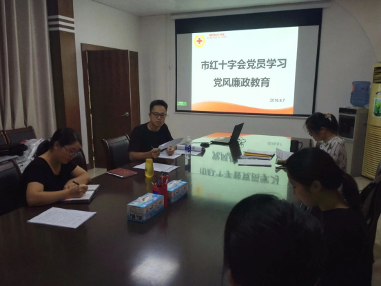 8月7日下午,市红十字会全员召开学习党风廉政教育暨“七五”普法中期督查考核工作动员会议。全会干部职工参加会议,会议由支部专职副书记、秘书长阳华艾主持。