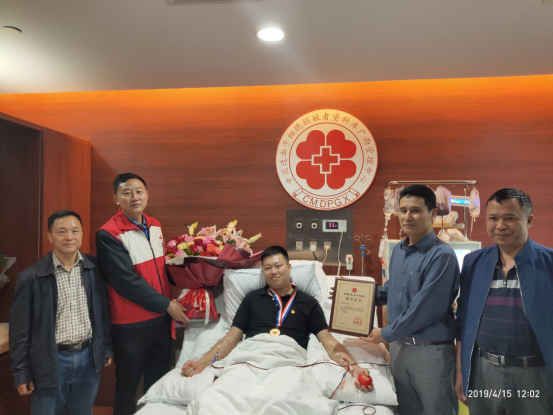 4月15日,365bet官方游戏_线上365bet_bet28365365娱乐场柳南区一机关干部吴先生,撸起袖子伸出膀子,完成了造血干细胞捐献采集,为一名素昧平生的血液病患者送去了一份弥足珍贵的“礼物”,使其重燃生命之火,战胜一直困扰在身的梦魇。上午11时,365bet官方游戏_线上365bet_bet28365365娱乐场红十字会副会长周双申等领导现场探望了正在采集干细胞的吴先生,为他颁发了荣誉证书、奖章,送上了鲜花、水果等,肯定了吴先生的高尚行为。