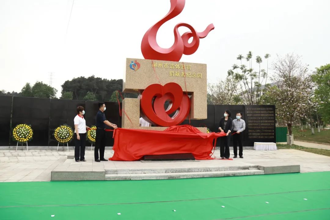 ▲吴强副会长(左二),卢柳屏副市长(右二),黄吉宁主任(右一)、袁燕珍书记(左一)等领导为遗体器官捐献者纪念园揭幕。