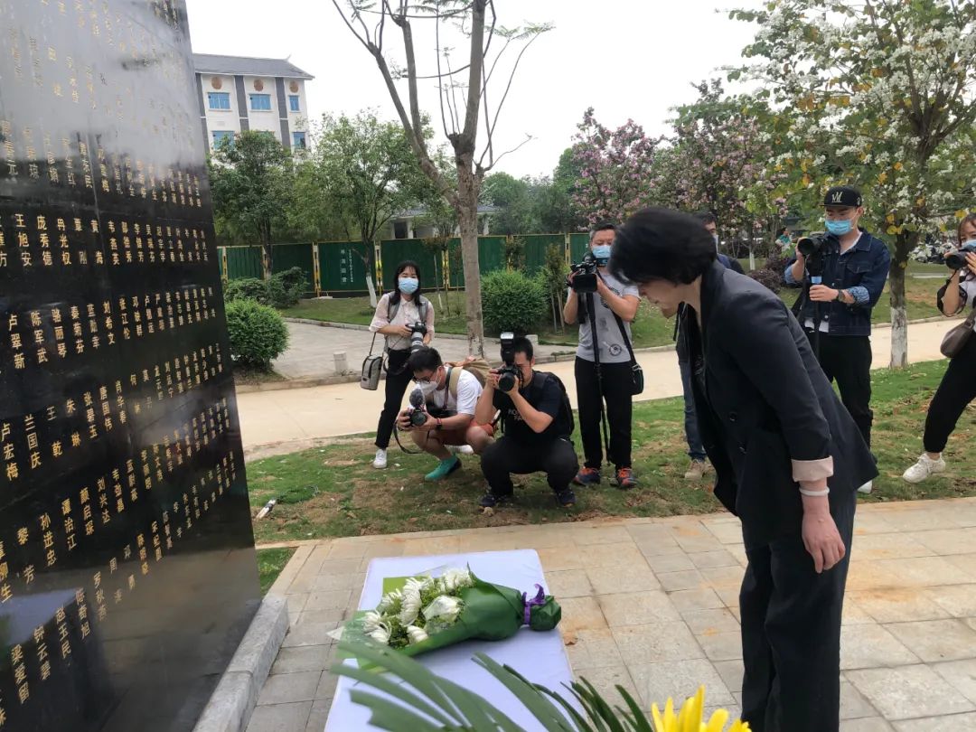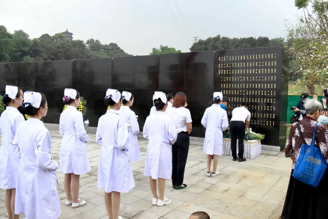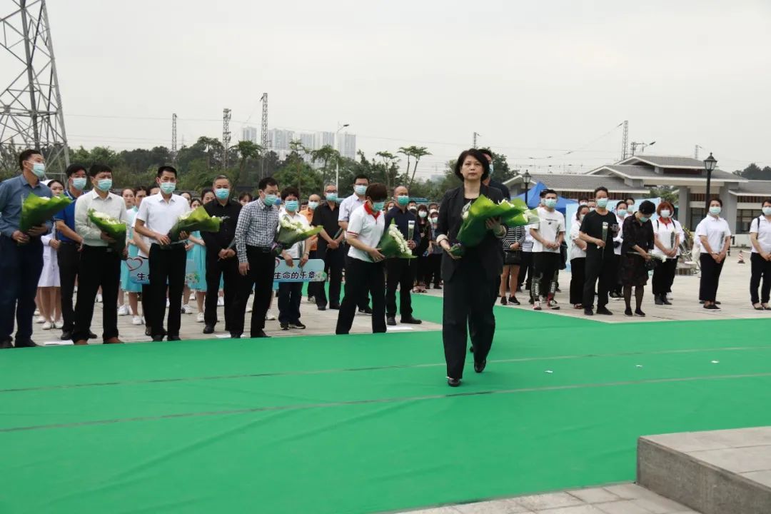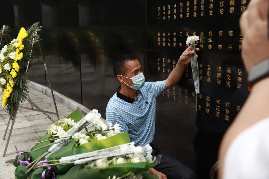 参加缅怀纪念活动的人员集体默哀、鞠躬,并向捐献者敬献鲜花。