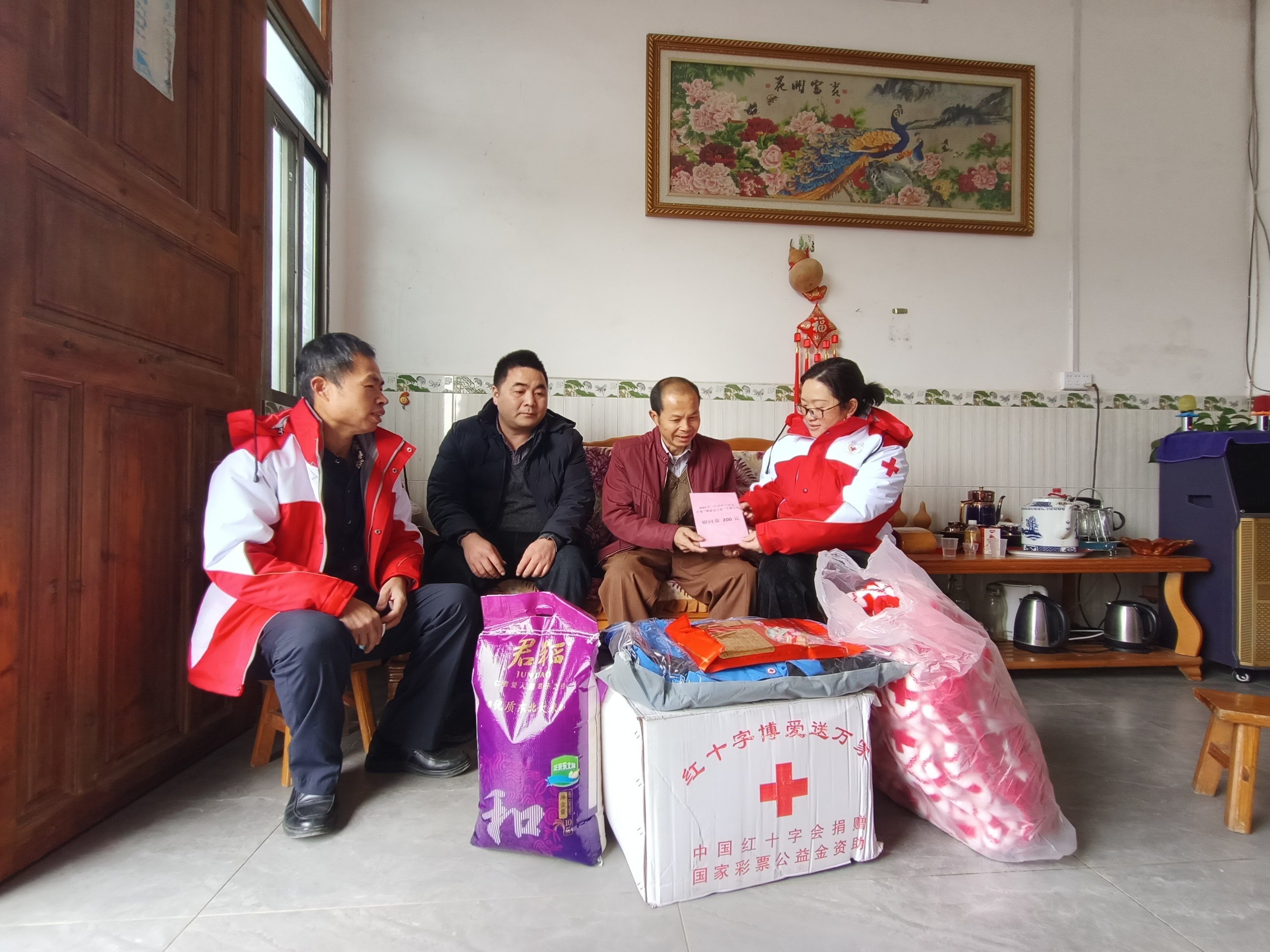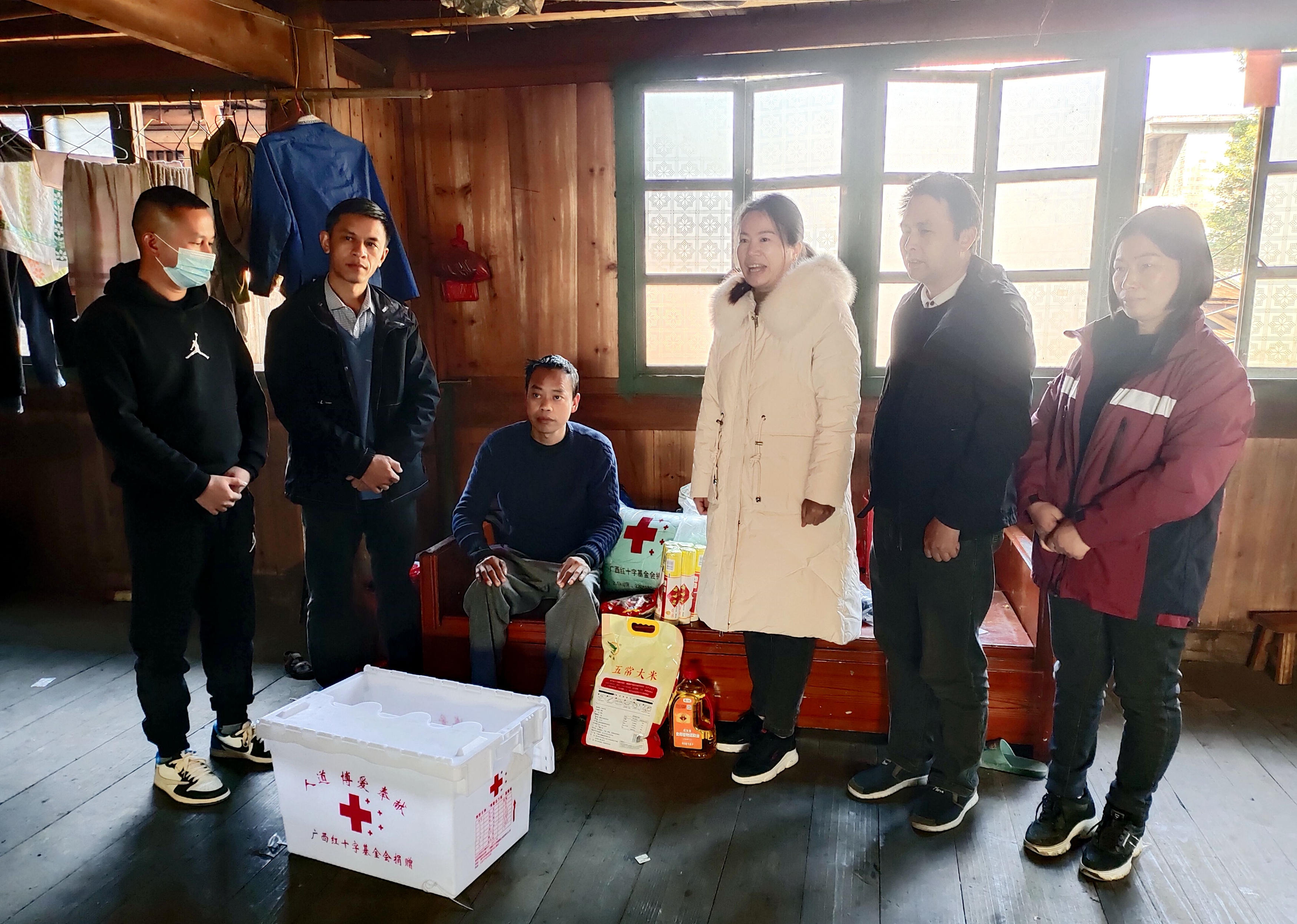 1月18日,三江侗族自治县红十字会到丹州镇走访慰问人体器官捐献者家庭。