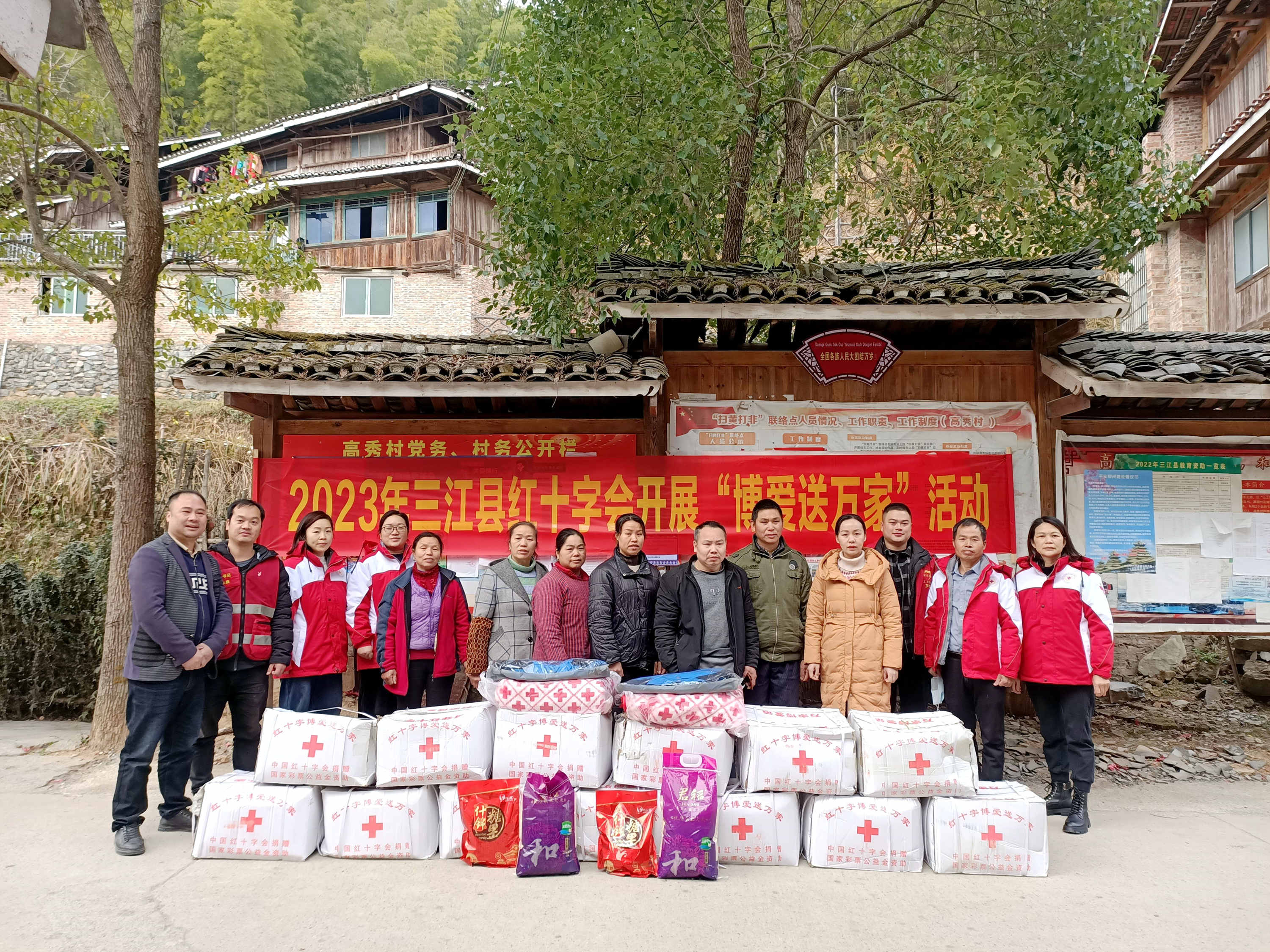 1月19日,三江县委组织部、县红十字会深入林溪镇高秀村联合开展2023年“红十字博爱送万家”慰问活动。