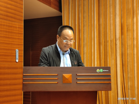 ▲ 市红十字会副会长周双申受常务理事会的委托,向大会做2018年工作报告和2019年工作安排
