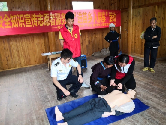 2019年水上交通安全知识宣传志愿服务“进苗乡 入侗寨”活动以深入开展“水上交通安全及防溺水宣传”活动为载体,构建海事部门、红十字会为主导、水上搜救志愿者队伍等社会资源广泛参与的水上交通安全“大教育”格局,建立形成一支授课队伍,不断提升群众水上安全知识和应急救护相关技能。